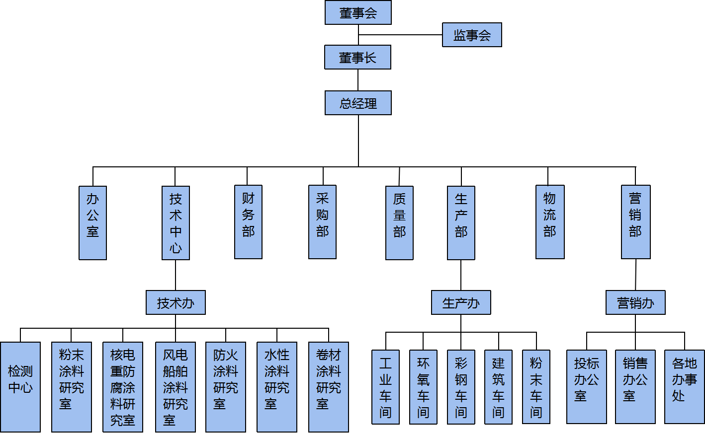 公司十分注重把科技成果轉化為產品優勢,截止目前公司擁有有效授權專利70件(發明專利24件,實用新型46件),公司具備雄厚的技術實力和較強的研發能力,2022年獲得國家知識產權優勢企業、第二十四屆中國專利優秀獎。公司主要涉及防腐涂料、防火涂料、粉末涂料、卷材涂料 4個領域的產品技術,分別由技術研發中心四位科長和專家帶頭,研發人員和相關部門參與。公司擁有國家級博士后科研工作站、江蘇省鋼結構重防腐防火涂料工程技術研究中心、江蘇省企業技術中心、江蘇省高性能防腐防火涂層材料工程研究中心,并于2019年初建立“蘭陵涂料學院”。(見圖1)。